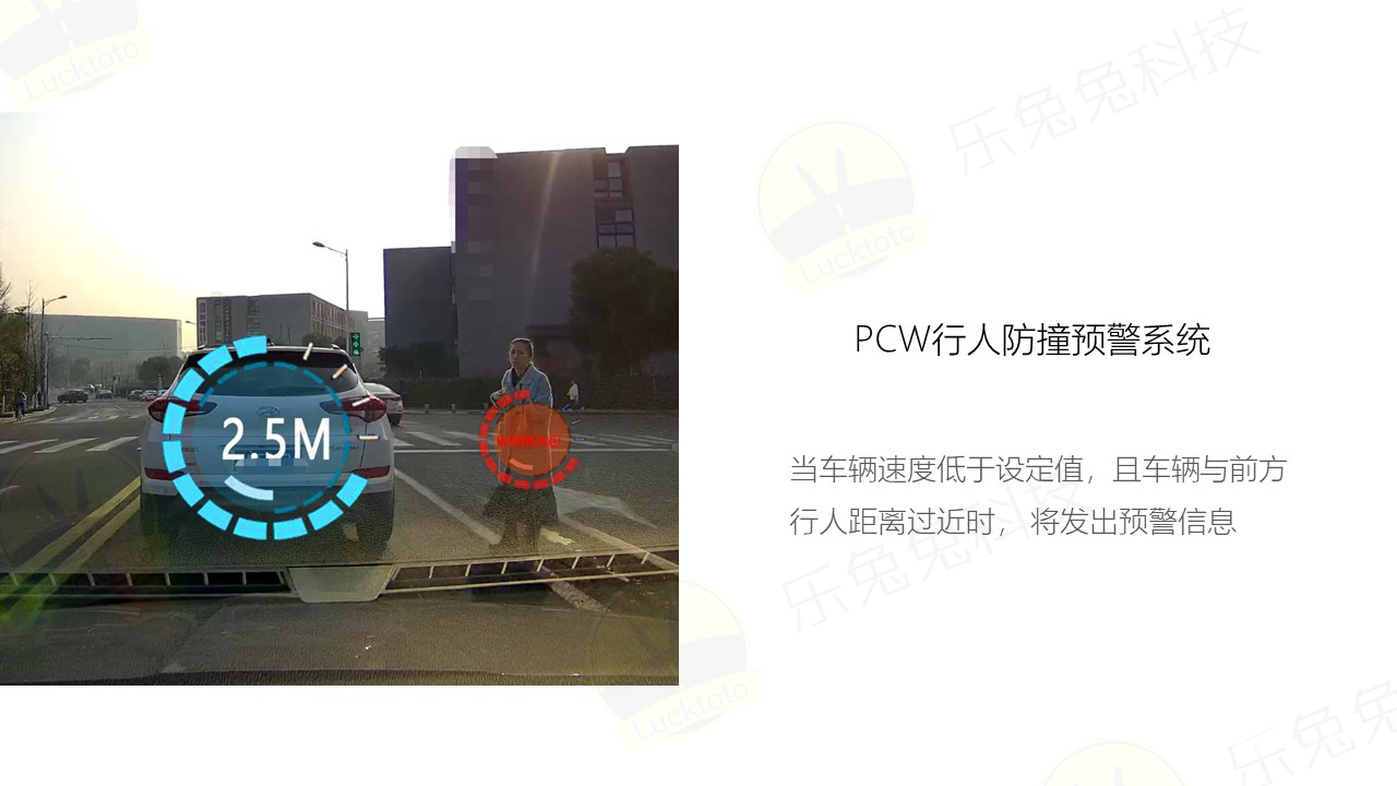 PCW行人防撞预警系统,行人碰撞预警系统对行人和骑行者进行智能识别,计算出距离车辆40米范围内的行人距离,危险半径出现行人时,进行预警提示。