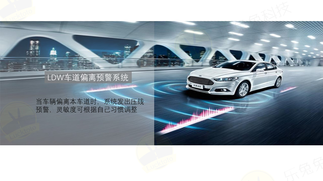 LDW车道偏离预警系统,车道偏离预警系统对行驶车道进行智能识别,在驾驶员无意识(未打转向灯)偏离原车道时发出警报。