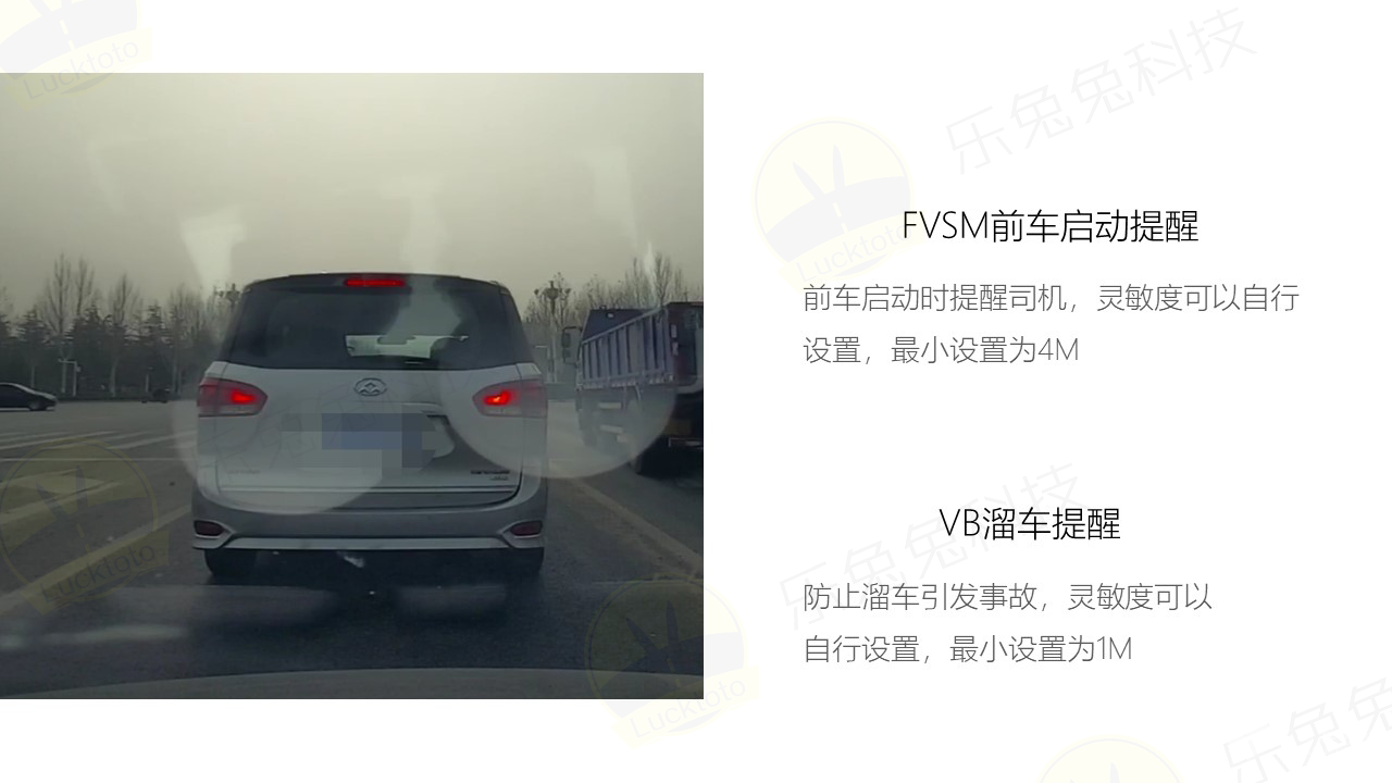 我们还在该系统中增加了FVSM、VB功能,在塞车情况下可以提醒司机前车已启动和溜车情况,增加司机的驾驶体验和安全防护。