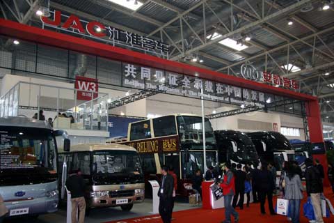 在安凯的展台上,记者还见到一款造型流畅的大巴。据了解,这款车是中国制造排放标准最高的客车,动力总成采用康明斯发动机,达到欧V排放标准;目前该车已经通过美国DOT安全认证和EPA环保认证,很快就将批量出口美国。同时安凯独有的发动机降噪措施,使该车车外噪声控制在80分贝以下;整车车身采用全承载车身结构,安全性能得到最大保障;独有的流线型结构,使风阻系数降至客车极限0.45,达到小轿车的风阻系数水平。