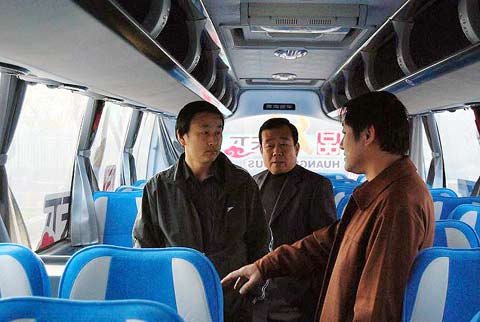 做为河北境内最大的民营客运公司,该公司拥有260多辆客运客车,下属4个客运、旅游、配件、维修企业。当看到黄海新款客运旅游客车亲自送上门来时,郑总非常兴奋,在听取了巡展人员的介绍后,郑总表示,黄海这两款客车完全具备好的客运旅游客车的所有特质:造型非常时尚大气,外观上给人的视觉冲击力很强;黄海车的结实耐用、经济实用是业界公认的;而新款的11米、12米客车能够做到百公里油耗24升更是令人感到惊讶。当即接受了黄海巡展人员的邀请,择日启程赴黄海公司考察参观。