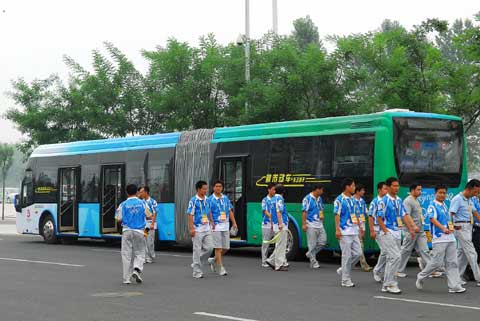 同时,2010年的上海世博会准备采购360辆电容和电池的“电电混合动力公交车”作为世博园内的通勤车辆。世博会组委会与中通客车现已达成样车验审的初步意向,“如果中通能够顺利拿下360辆的大订单,新能源汽车的示范规模将远远超过北京奥运会。”中通客车有关人士透露。目前,国内能够实现纯电动客车生产的厂家其实并不多。中通客车已组织人手研发这类型公交车,预计今年底有望将样车交付上海方面进行试验并申请产品公告。如果能够满足上海市的要求拿下订单,明年上半年将开始陆续生产该款车。