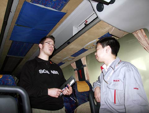 海格客车技术部的一位工作人员告诉记者,海格A90客车在生产工艺、管理上都遵循斯堪尼亚的整车制造原则,对原材料、焊接、骨架、底盘搭配及车身质量等的要求十分严格。此外,斯堪尼亚还派检测人员对每一辆制作完成的海格A80、A90客车进行细致的检测。有一次,斯堪尼亚的一位检测人员在一批新下线客车的车身上发现了很多不完善的地方,要求修整。经过第一次修整后,这批车还是没有通过检测。而且,居然一连修整了十几次都没有通过检测。斯堪尼亚检测人员的这种工作作风极大地刺激了生产车间的每一个苏州金龙员工。“经过这次事件后,所有工作人员在工作中更加细心了。此外,我们充分吸收斯堪尼亚底盘模块化制造经验,合理地应用在海格A系列豪华客车的生产上,大大节约了生产成本,有效提高了生产效率。”