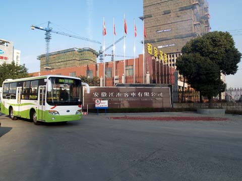 发往宿迁的江淮精品公交缓缓驶出江淮客车有限公司