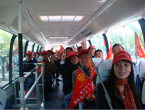 参加活动的员工都是来自一线车间的技术、质量、生产骨干,对于市场的了解和把握大多来源于销售、技术人员的培训和参观客户的现场反馈,这次他们将通过乘坐体验、与用户、乘客、维修站交流等形式直接的接触市场,近距离的与用户交流。其中一位来自焊装车间的师傅说,从奥运会开幕的那天起,相比如火如荼的比赛,他们最渴望看到的是行驶在场馆和景区前的JS6130双层,哪怕是稍纵即逝的一个画面也会让他们激动、兴奋。总装车间的一名师傅也说:“当在天安门前看到往日里再熟悉不过的JS6130时,我真的很激动,听着就坐在身边的乘客夸我们的车漂亮、舒服的时候,听驾驶员和乘务员讲述他们和乘客对车是如何喜爱的时候,我很感动。回去后,我要告诉同事们,我们的车在北京很受欢迎,驾驶员和乘客都很喜欢。”
