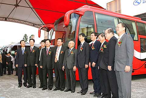 继今年3月初由三阳工业、大金龙与中兴大业巴士为台湾行车环境量身订做的“忠孝新干线”低底盘公交车正式通车后,于12月4日当天,三阳工业更以优越之生产工艺,结合世界第七大客车企业大金龙先进的客车技术,共同在台北市推出安全舒适之“三阳金龙”客车,本次新品发布会共集中展示了4款共6台精品客车。三阳工业董事长黄世惠、总经理黄光武、厦门金龙汽车集团领导叶天捷、厦门金龙汽车集团总经理、大金龙董事长孙建华、大金龙副总经理陈志强及台湾当地旅游、客运公司嘉宾共同出席了本次活动。