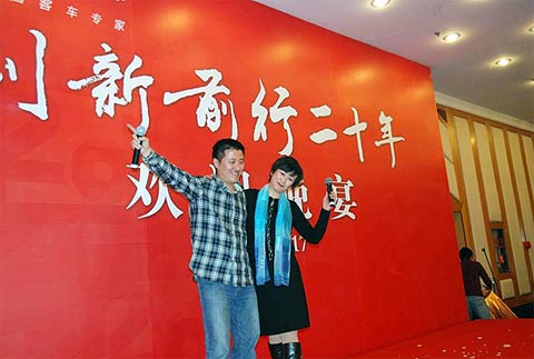 徐总首先登台致欢迎词,代表大金龙对20年来默默支持和关心大金龙的各界朋友表示衷心的感谢。中国公路车辆机械总公司总经理邹虎啸为表达对大金龙20年来所取得的成就的赞赏和肯定,特意在晚宴现场朗诵了由他亲自撰写的《金龙之歌》,得到了场下客户的支持,获得了热烈的掌声。由大金龙员工自编自演的节目也在晚会现场为来宾助兴,来自南京市城市建设投资控股有限责任公司副总经理季石青等客户代表也亲自登台为大金龙20岁生日献歌。最后整个晚会在欢乐祥和的气氛中结束。