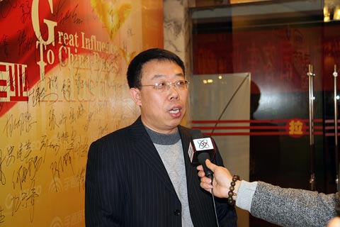 在颁奖现场接受记者采访