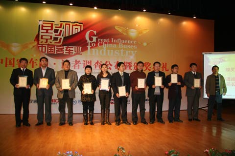 本次读者网上调查活动历时一个月,投票总数超过35万,经过网上评选及权威评审专家严格、公正的评审,最终评选出“2008年度中国客车行业十大新闻”、“2008年度中国客车行业最佳雇主”、“2009年度最受欢迎客车”、“2009年度海外市场推荐车型”、“2009年度配套安全节能推荐产品”以及“2008年度‘安全、节能、品牌’优秀论文奖”六个奖项。