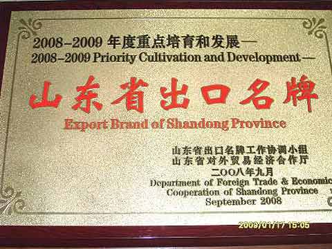 “2008-2009年度重点培育和发展的山东省出口名牌”奖牌
