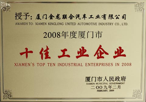2月23日,厦门全市150家重点企业齐聚到厦门市政府,召开“2009全市促进工业经济发展工作会议”。大金龙以优异的表现获得“2008年度厦门市十佳工业企业”,K01系列旅游客车、XMQ6129Y也在会上蝉联 “厦门市科技进步奖”。