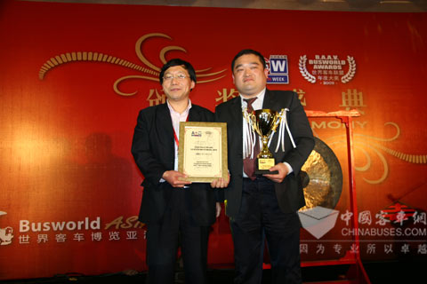 上海申龙在本届展会上,获得四项大奖。参加评奖的两款精品客车均有斩获,其中SLK6121UF13H混合动力公交车摘取了 “年度城市巴士”和“年度环保巴士奖”;豪华客车SLK6120F6A3荣膺 “年度中国原创客车大奖”。此外,申龙公司还获得“年度巴士制造商”,成为本次展会的最大赢家。
