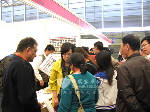 上午九点展会刚刚开始,陆续走过XINGKONG.COM展台的参观者纷纷驻足,对我们提供的各种行业专业资料表示浓厚兴趣,尤其是最新版本的《中国客车海外采购指南》吸引为数众多的海外行业专业参观者的追捧。