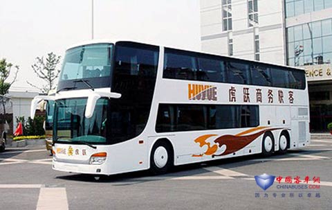 层半客车在没有增加任何运营成本的情况下,提高了运输效率。HFF6120KZ-1是近年来新兴的一种客车——层半客车。从外观上看,层半客车与普通单层客车的区别明显,比单层客车高200-300mm,而且前风挡玻璃分为两部分,从外观看好像在第一层上面还有半层一样。层半客车采用了驾驶室下沉技术,而且增加了乘客区域地板的高度。层半客车结构上的改动带来一系列好处,超大行李舱容积,开阔的驾驶员视野;同时由于改变了座椅布置形式,在相同长度的情况下,能够多布置一排座椅。