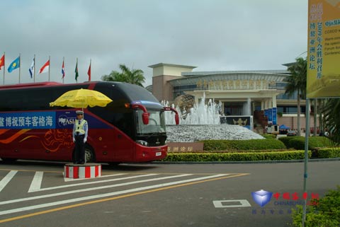 2009年4月18日,海南琼海万泉河入海口的博鳌小镇,全球1600余名最有影响力的各国政要、商界领袖、专家学者以及媒体人士汇聚于此,2009年博鳌亚洲论坛隆重开幕,博鳌再次吸引世界的目光。在琼海市通往博鳌论坛国际会议中心的道路上,在博鳌镇的主要交通干道,一辆辆白色的海格大巴穿梭来往,成为博鳌小镇一道独特的风景。