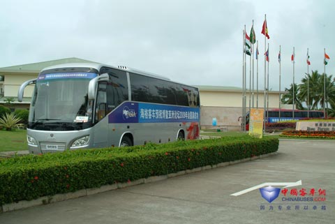 据了解,海格客车被指定为2009年博鳌亚洲论坛服务客车,这是海格客车继服务亚运会、奥运会后,首次服务国际性高峰论坛。为做好本次论坛交通服务,海格客车共派出20辆客车,其中包括一辆有总裁移动办公室美誉的大型豪华商务车“斯堪尼亚海格A80”,一辆顶级大型客车“斯堪尼亚海格A90”和18辆海格10米、9米大巴。