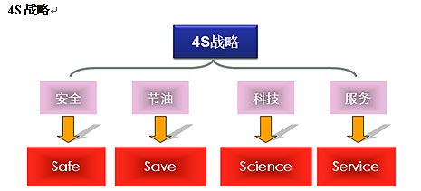 安凯一直秉持着造更安全客车的理念,不断为社会制造安全的客车。在此过程中,安凯对安全的理解不断进化,逐步将安全区分为狭义的安全和广义的安全两部分,其中狭义安全包括:产品的安全(Safe)、科技(Science),广义安全包括:服务(Service)、节能(Save)4个部分,我们将这四个方面统称为4S战略。4S战略不是全新的概念而是在造更安全客车理念下衍生的更细化的指导思想,体现在实际中就是提供更安全的产品、更高的科技含量、更周到的服务和更节能的客车。