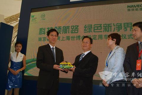 本次车辆交付仪式在上海国际车展上汽商用车展区中心舞台举行,上海世博局、上汽集团、依维柯公司和南京依维柯的各级领导共同出席了本次活动。整个交车仪式现场洋溢着浓郁的科技感和环保、绿色的轻松氛围。在30多家媒体的共同见证下,南京依维柯常务副总经理桂龙明将一个崭新的宝迪轻客车模交到了世博会官员手中,而现场展示的两辆具有鲜明世博标识的宝迪轻客,也将在上海国际车展闭幕后正式投入上海世博会的运营。这一交付仪式的完成意味着上海世博会首批指定轻型客车已经正式交付,届时它们将全面负责园区外围的VIP商务接待,成为世博会的“园中之舟”。