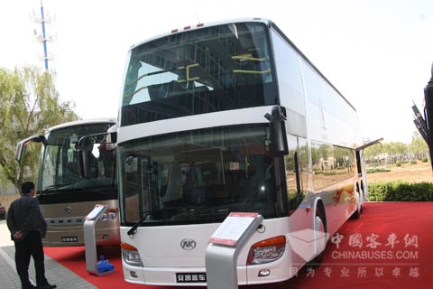 本次会议上展示的5款车型,双层车最为引人注目,高达4米的车身高度,使人产生“鹤立鸡群”的感觉。