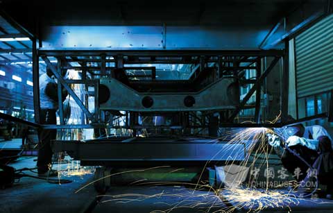 首先,减重的基本途径之一就是材料的运用,金旅公司设计时在充分考虑满足整车强度的基础上,通过选用更优质零部件材料,来降低整车的重量。对于半承载车身,主要受力骨架采用优质16Mn钢,避免采用普通钢以保证整车强度,而且无需采取加大尺寸或加厚材料。对于全承载车身,则全部采用优质的16 Mn钢,既增加了强度又降低了车身的重量。其次,结构设计对车身重量的影响同样不容忽视,金旅客车在设计时采用UG三维软件全参数化整车设计和CAE有限元分析软件进行结构优化,所得的结构为考量了最优强度得出的综合结论。这样的设计在减重的同时,全面提高汽车的动力性,减小制动距离,减少油耗。