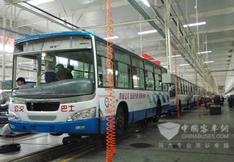 生产线上的牡丹江公交客车