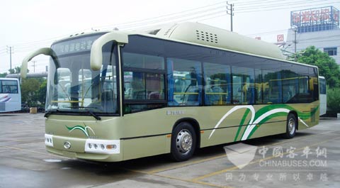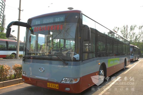 上图为在北京投入实际运营的大金龙新型混合动力客车XMQ6125GH