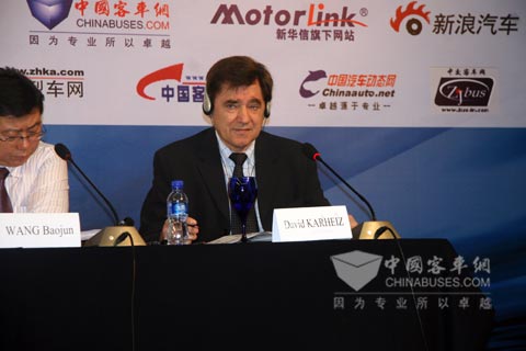 此外,有与会嘉宾问及新能源汽车的电能是否可以考虑利用太阳能。David KARHEIZ结合自己的经验认为:“考虑到客车顶部空间有限,安装太阳能电池板所产生的电能无法保证车辆的正常运营”。同时,对混合动力电能和机械能如何有效使用和转换以及“制动能再利用”技术,David KARHEIZ也一一回答了与会嘉宾的提问。