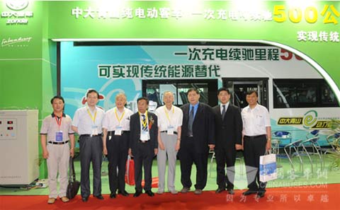 在2009北京国际道路运输展中,被业内媒体誉为“最值得期待的纯电动汽车”——中大YCK6118HEC,再次成为展会的焦点。原机械部电工局局长、中国电工技术学会名誉理事长、中国电动车辆专业委员会主任委员周鹤良,中国工程院院士、香港大学教授陈清泉,中国电子商会电源专业委员会秘书长孙京伟一行亲至中大汽车展区,详细询问中大青山纯电动客车的运行性能及各项技术参数。中大集团董事长徐连国、总裁徐连宽、中大汽车集团总经理马宪热情接待,并介绍了该车电池、电机、控制器三大核心技术参数及所取得的重大技术突破,该车电池可充放电次数已大于1000次,使用寿命大于50万公里,耗能不大于4kW.h/100km.t,客车最高车速不低于110km/h,最大爬坡度大于20度,且三大核心技术都具有自主知识产权。