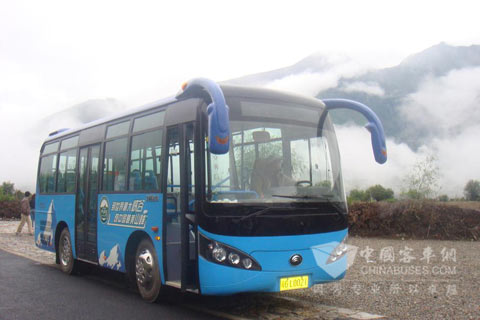 宇通公交在最美山峰穿行