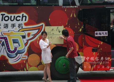 众明星乘坐黄海大巴抵达活动现场