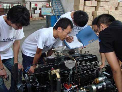 仔细观察客车零部件