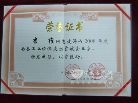 作为南昌市的重点出口单位,百路佳公司凭借优异的出口业绩为2008年交出一份满意答卷的同时,也让公司董事长李维的个人领导魅力彰显无遗。在2009年7月22日召开的由南昌市委、南昌市人民政府组织的“2008年度工业发展先进个人和企业表彰大会”上,李维董事长被南昌市政府授予“2008年度突出贡献企业家”荣誉称号,荣获此荣誉的还有江铃企业董事长等18位优秀的企业领导人。