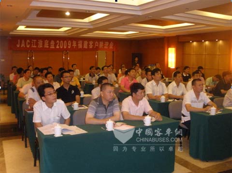 福建省是江淮底盘的传统优势市场,市场保有量一直名列前茅,并有着丰富的客户资源和良好的口碑。为进一步做好福建市场的终端用户工作,增强与终端用户的联系和沟通,JAC江淮客车底盘营销公司在近日召开主题为“品行天下、共创价值”的JAC江淮底盘2009年福建市场用户联谊会。本次会议主要邀请了福建省县级客运、公交的领导及发动机家和客车厂的区域经理,共26家单位61名代表参加会议。
