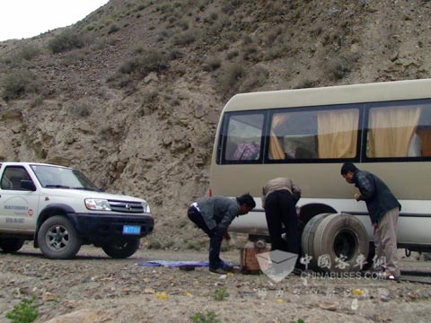 7月7日11时,西藏昌都地区文康旅游运业有限公司驾驶员向苏州金龙客户服务部打来电话——有一台海格KLQ6702发生故障,抛锚在距离昌都县200公里的荒野中,需要紧急救援!