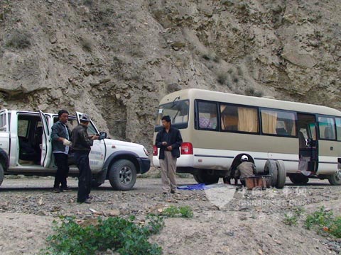 更换后桥总成,在维修厂内设备齐全的状态下也是个费工费时的大作业,何况是在野外道路上,更何况是在海拔三四千米的高原上!夜幕已降临、气温骤降,但抢修小组的技师们仍在埋头作业,“驾驶员能连夜开车赶来,我们也要连夜把车修好”!12日凌晨3时,拧紧了最后一颗螺栓,大家疲惫的脸上露出了欣慰的笑容。