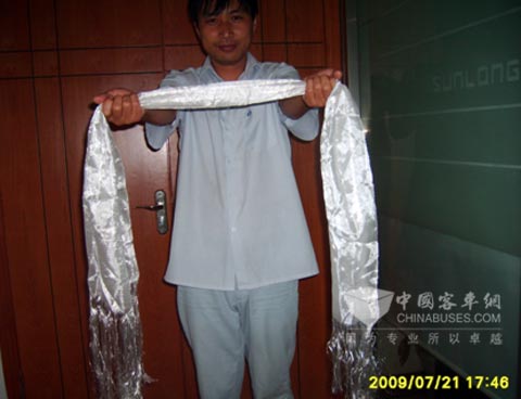 申龙售后人员还多次到现场与该公司的机务处张处长交流关于车辆技术及维修保养管理、车辆安全等方面的知识,并就其对建立车辆考核、定期对车辆进行保养检查等提出了具体的方案和建议。张处长非常感动,为表示对售后人员的感谢,给申龙售后人员敬献了哈达(注:张处长是藏族人)