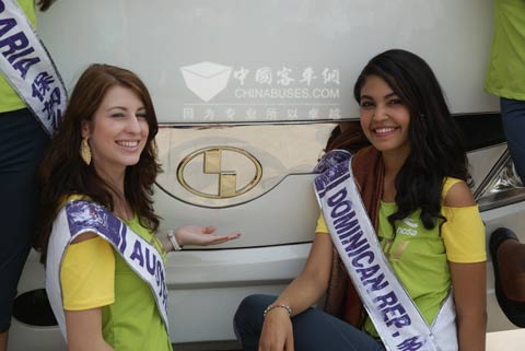 佳丽们的一颦一笑都将魅力、气质、风采表现的淋漓尽致。会场上,俊逸大气、沉稳睿智的少林客车引起了国际佳丽的浓厚的兴趣,纷纷上前与其合影,或立于车前,或站在车内,摆出多种Pose,将靓丽的瞬间定格在众多闪烁的镜头之中。