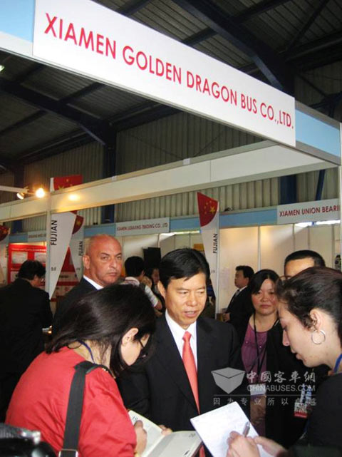 展会上,金旅客车引起了众多参观者的高度关注。与此同时,许多客户对于金旅带来的豪华舒适性以及安全性能给予了很高的评价。中国商务部副部长钟山也前往金旅展台参观并接受了中外记者的采访。采访中,钟山先生给予金旅公司高度的赞赏,同时指出,厦门金龙旅行车有限公司作为中国客车企业的中坚力量,其在对制作工艺的精益求精、产品质量及技术创新方面始终是处于领先地位的。