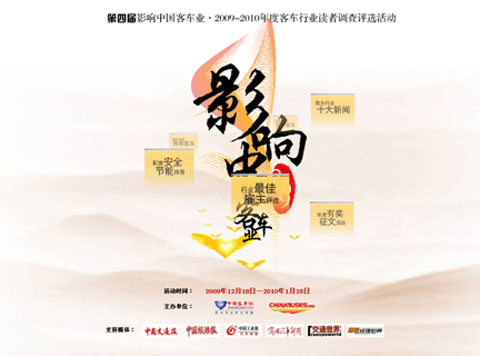 哪些是对2009年中国客车业影响最为深远的事件?哪些车型在2009年最受国内和海外用户青睐?哪些配套产品在2009年受到的赞誉最多?又有哪些企业的用人理念、福利薪酬在客车圈有口皆碑?这一切,我们来为你释疑。