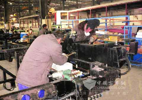 总装车间的师傅们正在加紧安装管路