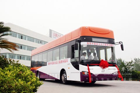 记者了解到苏州金龙公司自成立以来就一直致力于新能源客车的研发和制造:1999年,制造出12辆纯电动中巴;2002年,试制成功混合动力客车;2006年3月,研制出我国第一台氢燃料电池城市客车;2008年,研发出第三代低地板氢燃料电池城市客车;2010年5月,苏州金龙与清华大学联合研制成功第四代氢燃料电池城市客车,并实现中国首台氢燃料客车出口,该车将服务于8月份在新加坡举行的世界青年奥林匹克运动会。