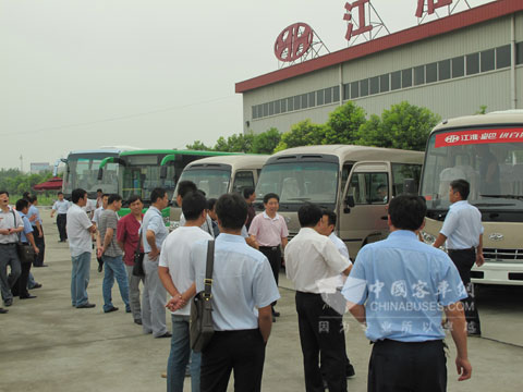 会议结束后,与会的嘉宾参观了江淮客车在江都的厂区和样车,纷纷对江淮客车的好省油、高品质给予了高度评价。江苏丹鹤汽车运输有限公司副总经理周健先生主动向记者讲述了他与江淮客车的情结,周总在2006年购买了4个品牌的客车用于同一线路的运营,经过近两个月的行驶,在所有运输环境相同的情况下,江淮客车的节油性能脱颖而出。周总表示,江淮客车每百公里要比其他品牌相同车型的客车节省20元左右,这可能看起来不多,但我们公司有200余辆客车,每天运营在4万公里左右,这样算下来我们一年仅在燃油方面就可以节省将近300万元,这对我们公司是一笔非常可观的收入。所以自从06年开始,我们就批量购置江淮客车,现在已经和江淮客车建立了良好的战略合作伙伴关系。同时,江淮客车的售后服务体系也是非常完善。江淮客车为了能给我们提供便捷、优质的服务,特地在我们公司总部——盐城设立了售后服务站。这样,我们就可以在家门口进行车辆的日常维护和保养,这为我们客户创造的价值是无法估量的。