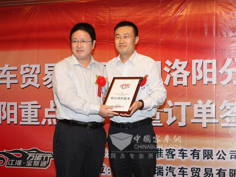 安徽江淮客车有限公司销售总公司副总经理武文雷先生与河南省批量订单客户进行签字仪式