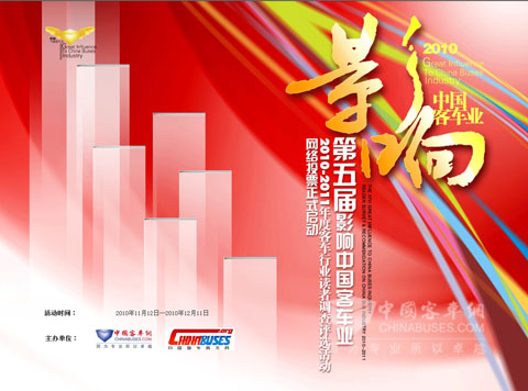 2010年11月12日,由XINGKONG.COM[www.otol-cn.com]与中国客车英文网[www.chinabuses.org]主办的第五届影响中国客车业系列活动正式启动,活动将全面回顾、梳理、盘点2010年中国客车产业的得失,展望、思考、迎接2011年中国客车行业未来。