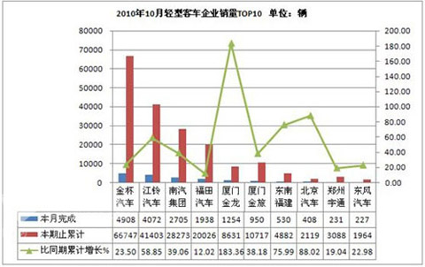 2010年10月份客车产销量前十名