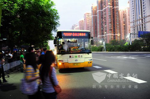 在广州市的其他高校,也存在着类似的乘车点,宇通客车光荣地承担起了搭乘部分志愿者的任务。这些乘坐宇通车往返工作地点和学校的志愿者,每天早晨走出宿舍,第一眼看到的便是在安静地等候他们的宇通客车,年轻的志愿者们趁着在车上的时光,交流一下昨天的趣事,一起谈论亚运的风采,兴起时再一起唱一首青春的歌曲,宇通客车一路风行,歌声传到窗外,融入广州城亚运的主旋律之中。