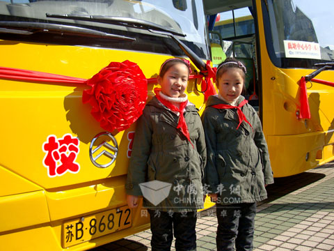 喜悦出现在在场所有人的表情中,尤其是那些未来最主要的“乘客”——中小学孩童更是表现得由衷高兴。一对双胞胎小姐妹在记者镜头前合影的时候露出了甜美的微笑,姐姐潘雨露告诉记者:“我喜欢这些漂亮的校车,我愿意乘坐这些车上下学……”