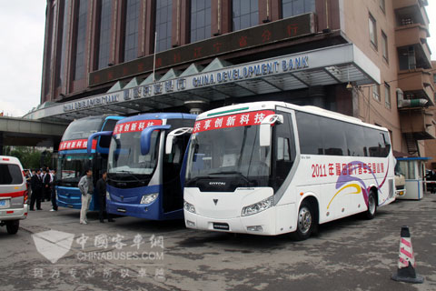本次推介会福田欧V展出了自主研发的“大容量”客车BJ6125一层半全承载城间客车、BJ6115全承载城间客车和BJ6900客车。其中BJ6125一层半全承载城间客车整体线条流畅、刚中带柔,自主创新全承载结构设计,在吐鲁番通过了40摄氏度高温测试,在海拔4824米的巴颜喀拉山经过了高原试验,经受各种路况及恶劣环境的考验。BJ6115全承载城间客车,整车源自欧洲时尚经典,专利造型设计,凸显现代科技感。采用自主开发全承载车身,较同类半承载车型轻500-600kg,百公里节油2-3L,具有卓越的安全性能,满足欧盟ECE66安全法规。行李舱空间充分提升,最大可达20%,达到7.2立方米,车内空间利用率高,较同类半承载车型多2个座位数,是客户很好的选择。
