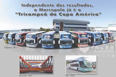 备受关注的美洲杯正在如火如荼地进行,马可波罗客车也正在为此次美洲杯所有参赛球队提供着球员接送服务。这是马可波罗客车在于亚洲、欧洲众多客车品牌同台竞技之后,凭借其舒适、安全和细节等优势,继2004年秘鲁、2007年委内瑞拉美洲杯后再一次成为美洲杯球员的接送专用车。