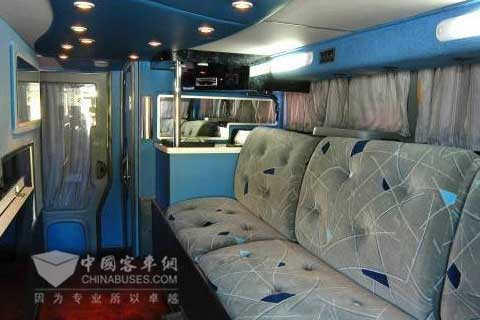 马可波罗的产品都以客户需求为首要出发点,此次选用的Paradiso 1800双层客车,上层为46个半躺式座椅,下层为12个超软豪华座椅,整车配有高档AV系统,电视,空调,暖风和卫生间。极大限度地满足了长途旅行的舒适要求。